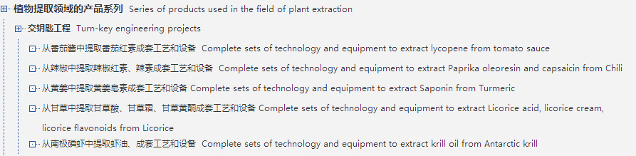 為植物提取提供一流的裝備和技術服務  Providing first-class machineries and technical services for plants extraction